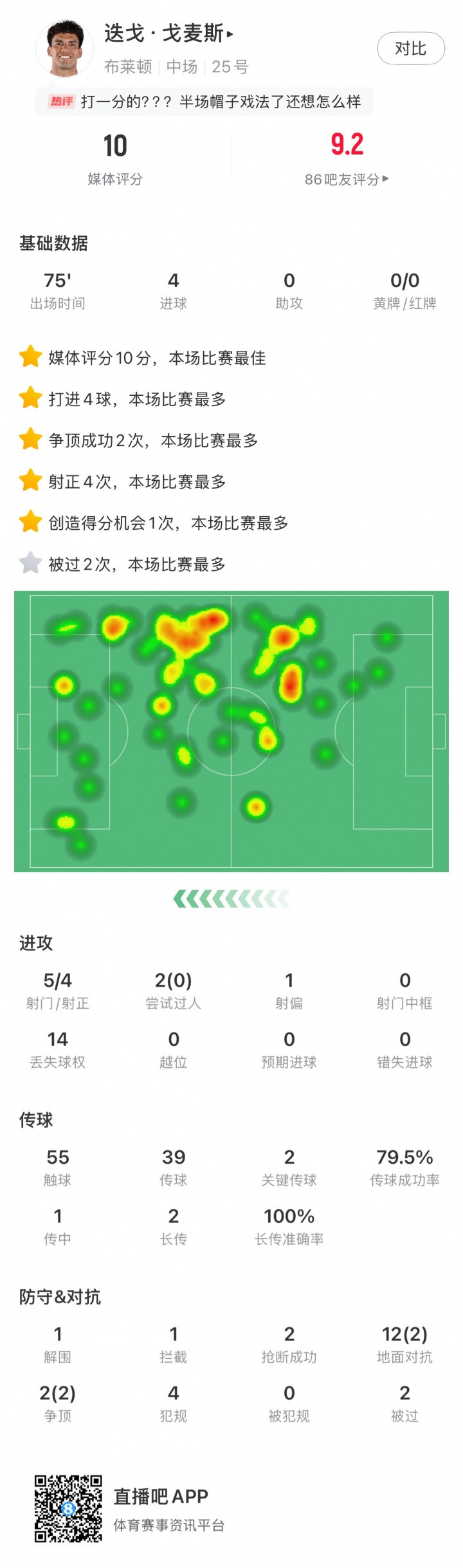 迭戈-戈麦斯本场数据↓