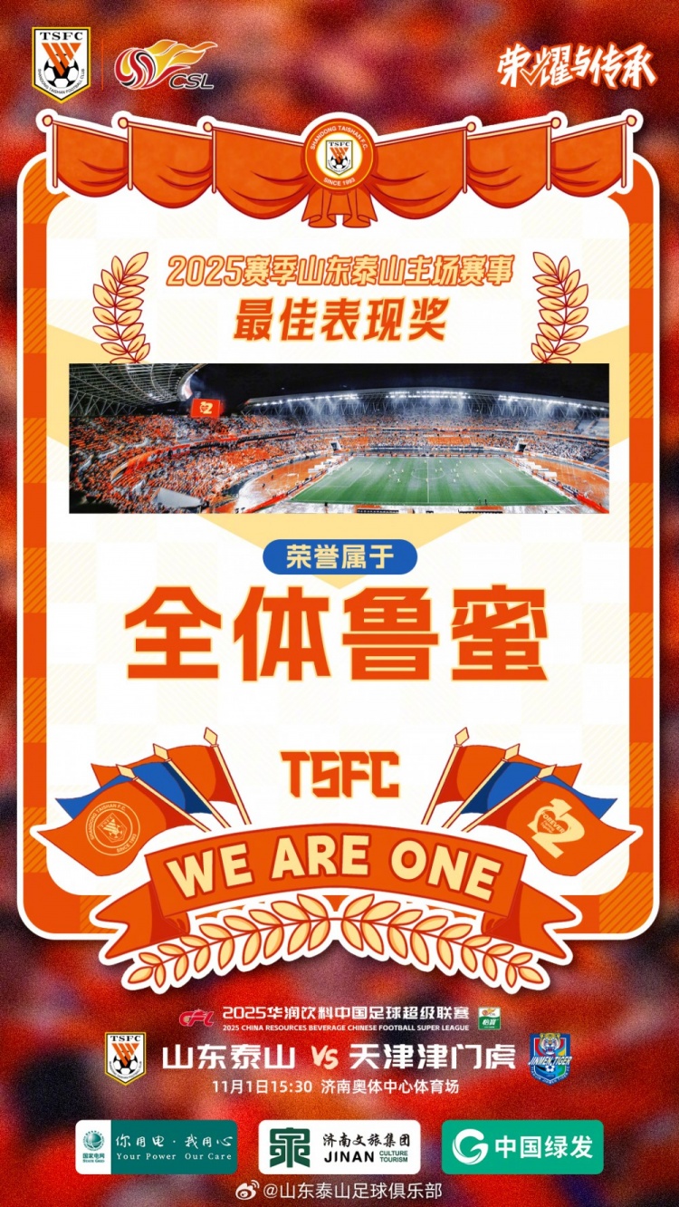 在本赛季主场作战 收官战前,山东泰山俱乐部官方发布海报,欧洲杯直播吧将本赛季山东泰山主场作战 赛事最佳表现奖给予全体鲁蜜。