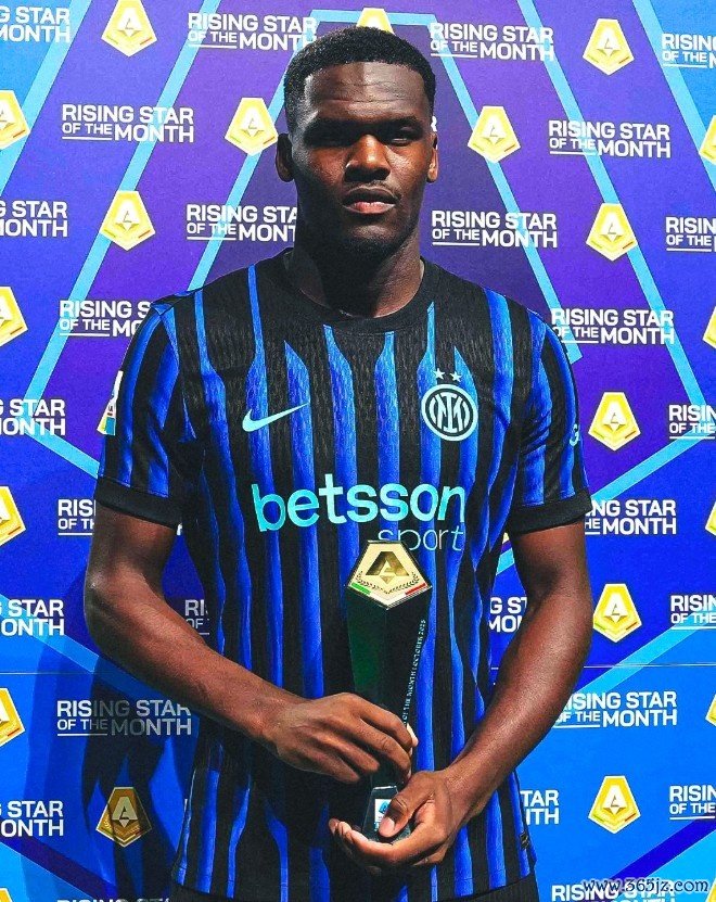 11月10日讯 意甲第11轮国米主场作战 迎战拉齐奥的赛事 之前,蓝黑军团前场球员博尼领取了意甲官方颁发的10月月度新星奖项。